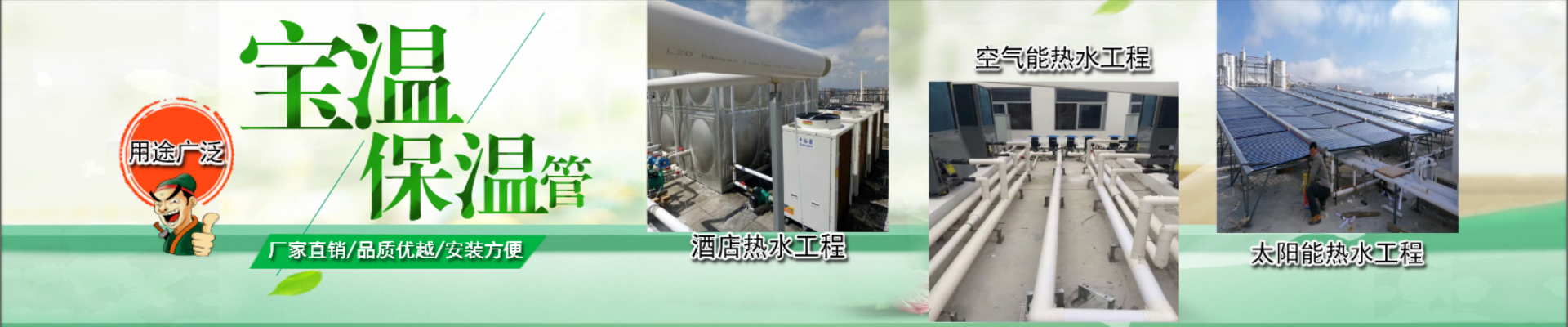 產(chǎn)品廣泛應(yīng)用于太陽(yáng)能熱水系統(tǒng)、空氣能熱泵熱水系統(tǒng)、中央空調(diào)冷熱水管道、空壓機(jī)余熱回收熱水系統(tǒng)、溫泉保溫管、酒店、賓館熱水工程、學(xué)校熱水改造及供熱保溫管道等,深受廣大用戶(hù)好評(píng)?。?/span>