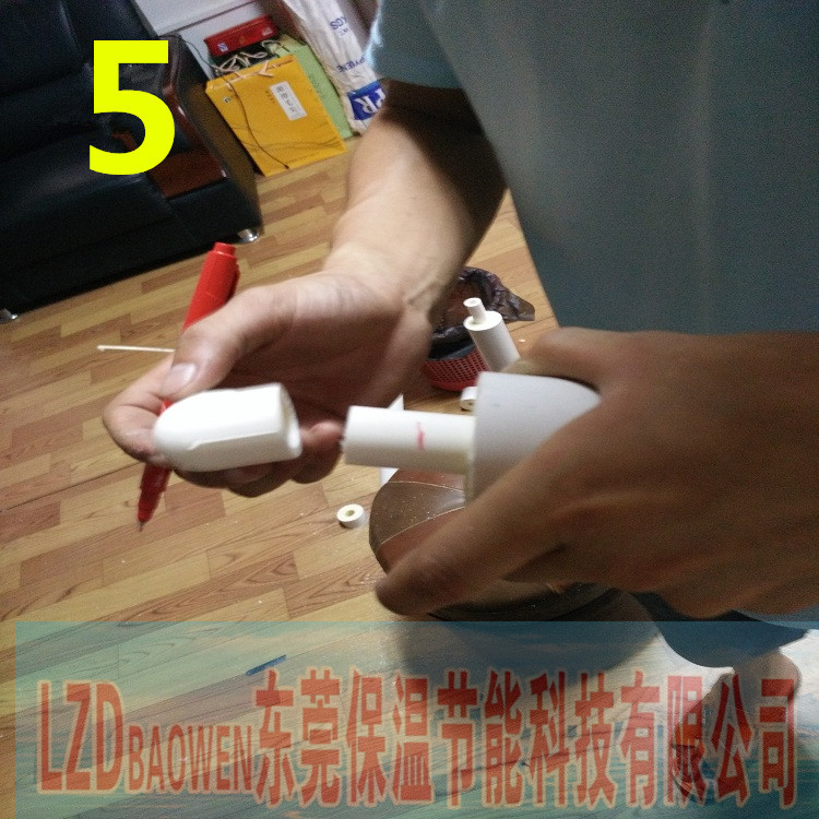 (五) (五) 先包上半邊外包配件,再打發(fā)泡填充劑,然后再蓋上另一半配件,最后擰上螺絲