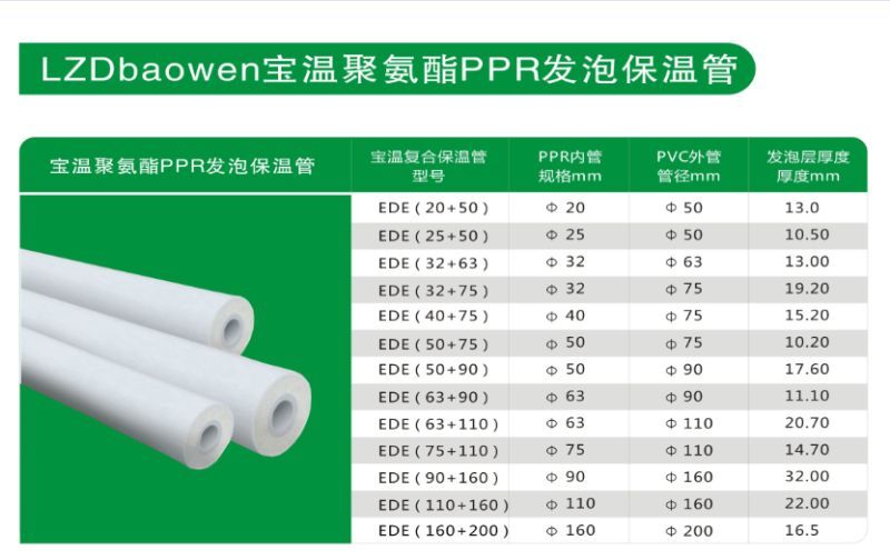 好飯耐不得三頓吃,好衣架不住半月穿。好水管經(jīng)得住長(zhǎng)年及重重的嚴(yán)格考驗(yàn)。寶溫PPR保溫管質(zhì)量過(guò)硬現(xiàn)是水管的主流管材產(chǎn)品。以耐熱性較強(qiáng)的PPR熱水管做為內(nèi)管,外管套用的是PVC硬管,中間層采用進(jìn)口的聚氨酯保溫材料,閉孔阻燃自熄火為芯層,通過(guò)優(yōu)化組合,使中間層形成一層非常厚的保溫層,從保溫儲(chǔ)水箱里流出來(lái)的熱水不易降溫,即使是出水500-1000米后到使用方也可達(dá)到的保溫效果。此保溫管道比普通保溫棉的保溫性和耐用性要強(qiáng)很多。