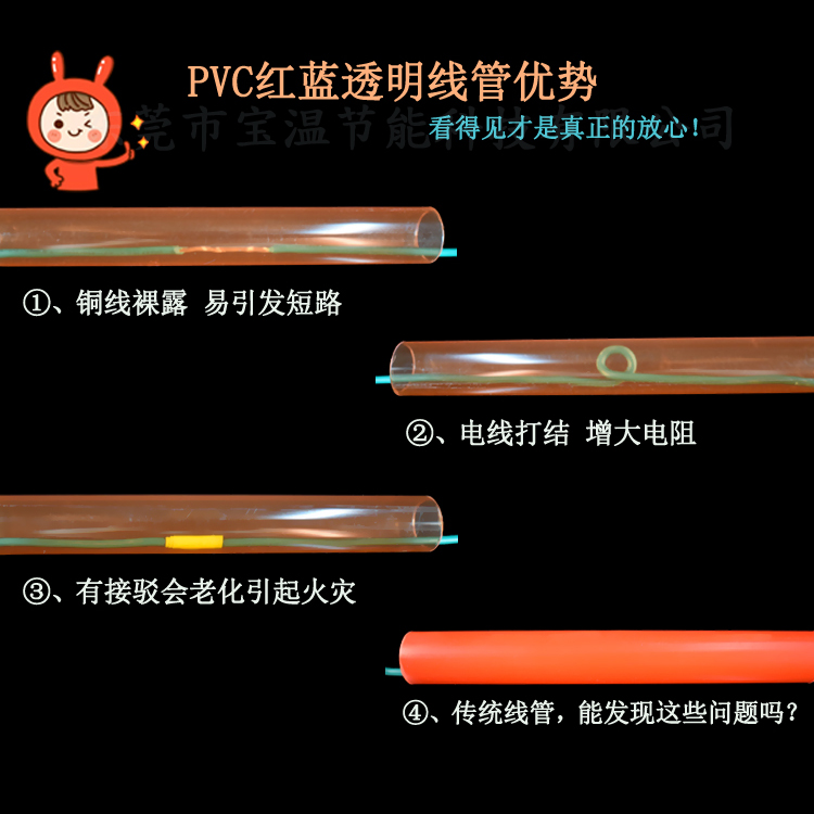 形成用電安全隱患。爍云PVC紅藍(lán)透明線管,不僅可以讓業(yè)主清晰識(shí)別線管內(nèi)穿線情況,