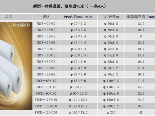 東莞市寶溫節(jié)能科技有限公司PPR聚氨酯發(fā)泡保溫管的內(nèi)水管采用優(yōu)質(zhì)的PPR PN=2.0Mpa熱水管,發(fā)泡密度為60-80m3,(國標(biāo)標(biāo)準(zhǔn)CJ/T114-2000≥60)保證熱水管道連接質(zhì)量;外戶套管采用PVC/PE硬管,