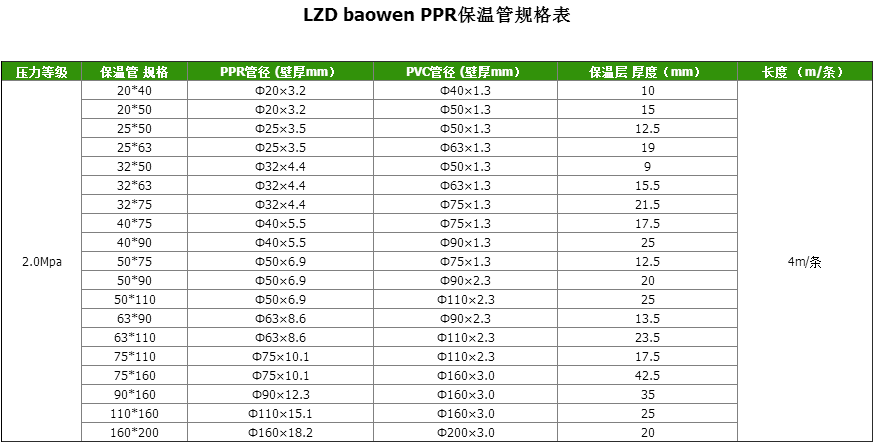 東莞市寶溫節(jié)能科技有限公司PPR聚氨酯發(fā)泡保溫管的內(nèi)水管采用優(yōu)質(zhì)的PPR PN=2.0Mpa熱水管,發(fā)泡密度為60-80m3,